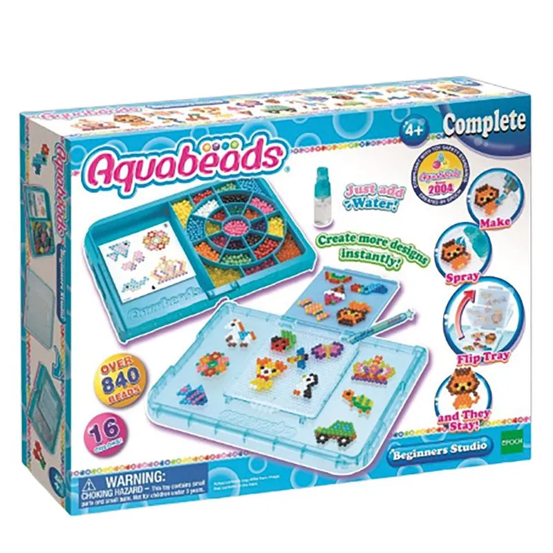 Aquabeads-perler festes til hverandre på en super enkel måte – omtrent som strykeperler. Alt du trenger å gjøre er å spraye perlene med vann, så fester de seg sammen! Inni boksen finner du mer enn 840 perlene i 16 forskjellige farger som kan oppbevares i den fine boksen. Brettet gjør det enkelt å holde orden på perlene dine, slik at du kan sortere perlene etter farge og lettere finne frem når du skal sette i gang med perlingen.