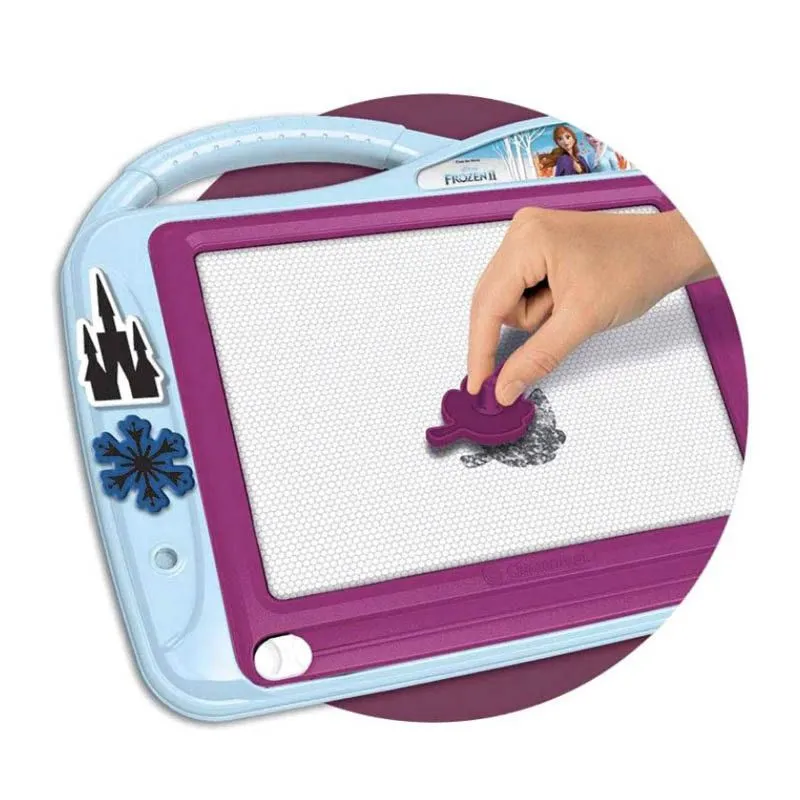 Bruk kreativitet og fantasi med den flotte tegnetavlen fra Clementoni! Tegnetavlen kommer med motiv inspirert fra Disney filmen Frost 2. Bruk stemplene til å lage søte figurer som snøfnugg, blad og et slott. Alt kan enkelt vaskes ut igjen slik at du kan bruke kreativiteten om og om igjen.