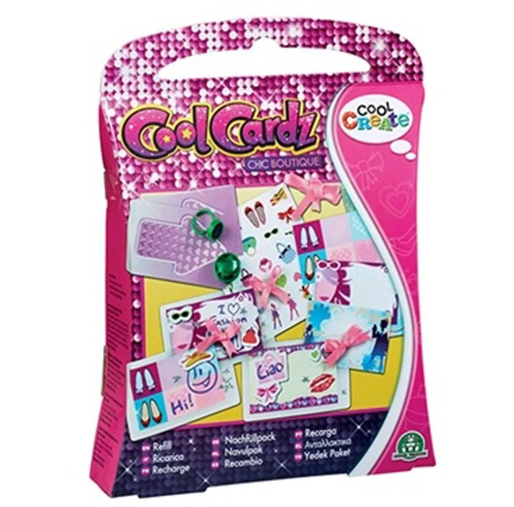 Cool Cardz Refill til Cool Cardz Chic Boutique settet (selges seperat) Settet inneholder silkebÄnd, 10 kort, 10 laminatark, 1 stickersark, 1 prismatic stickersark og 1 ringstempel. Passer fra 6 Är+