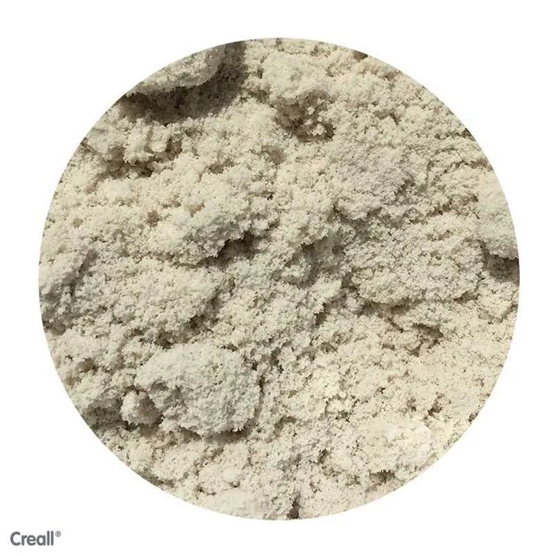 Ta med sandopplevelsen innendørs! Denne mke sanden er perfekt for modellering, bygging og leking. Fungerer som våt sant, men tørker aldri ut. Materialet er lett å rydde opp, gjenbrukbart og glutenfritt. Må ikke blandes med vann eller brukes av barn under 3 år. Spannet inneholder 750 gram med modelleringssand.