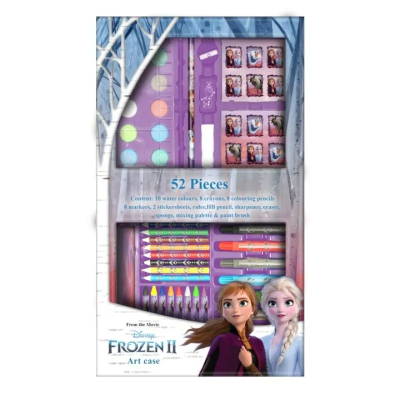 Mal, tegn og dekoret dine flotte kunstverk med denne tegnekofferten med heler 52 deler! Kofferten har flere forskjellige motiv av gjengen fra Disney Frost 2 som Elsa, Anna, Sven, og Olaf. Kofferten mĂ„ler 45 cm nĂ„r den er Ă„pen og har en lite trykknapp for Ă„ holde den igjen nĂ„r den er lukket.Â