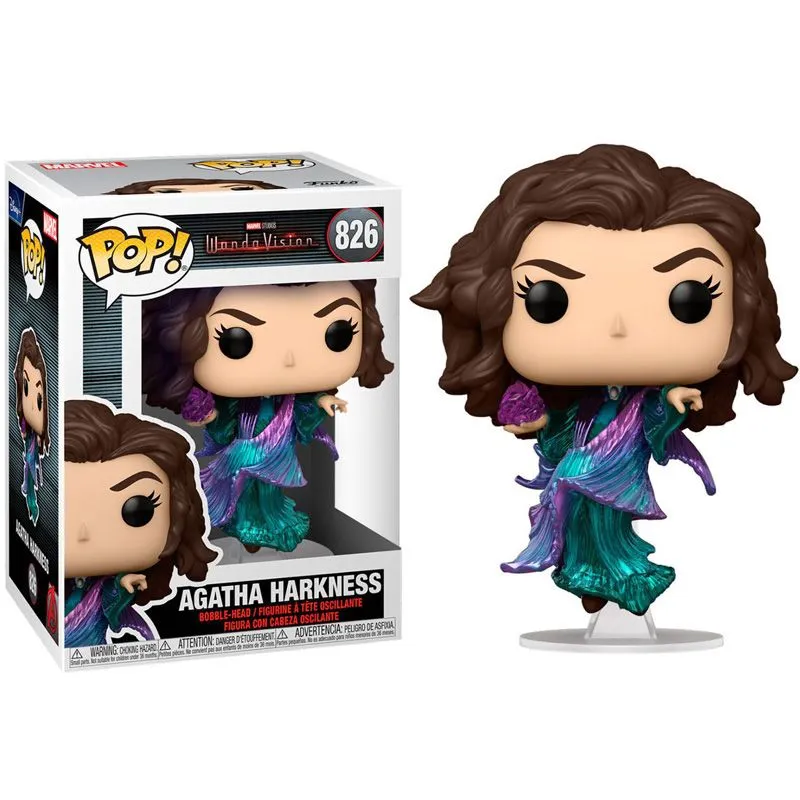 Nå kan du samle alle dine favorittkarakterer fra serien WandaVision. Denne figuren er et bobble-head, og CAgatha Harkness måler ca. 10 cm.