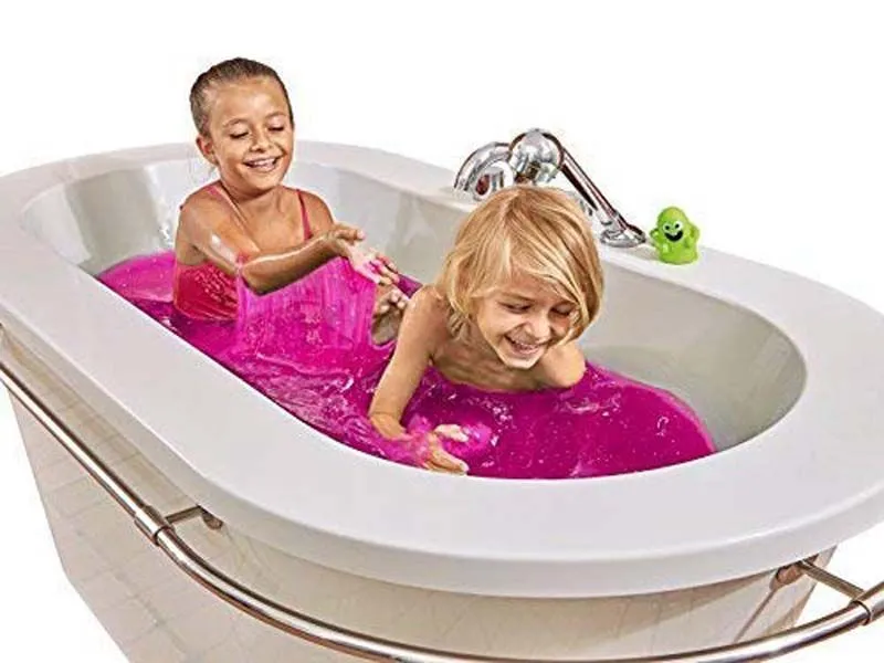 Glitter Slime Baff forandrer badevannet til herlig glitter slim. Etter bruk løses slimet enkelt opp ved å tappe i mer vann. Slime Baff setter ikke flekker, inneholder ingen farlige stoffer og rengjøres enkelt etter bruk. Fyll badekaret med ca 3 cm vann før Slime Baff-pulveret drysses jevnt utover, samtidig som det røres inn i vannet. Tilpass med mer vann. Etter noen minutter er vannet blitt til superherlig slim som kan dras, strekkes, skvises og plaskes med! Etter bruk tappes det i mer vann, samtidig som det røres til slimet har løst seg opp. Inneholder 1 pakke med 150 g pulver, nok til 1 bad/40 liter vann. Slimet er 100% nedbrytbart. Alder: 3+