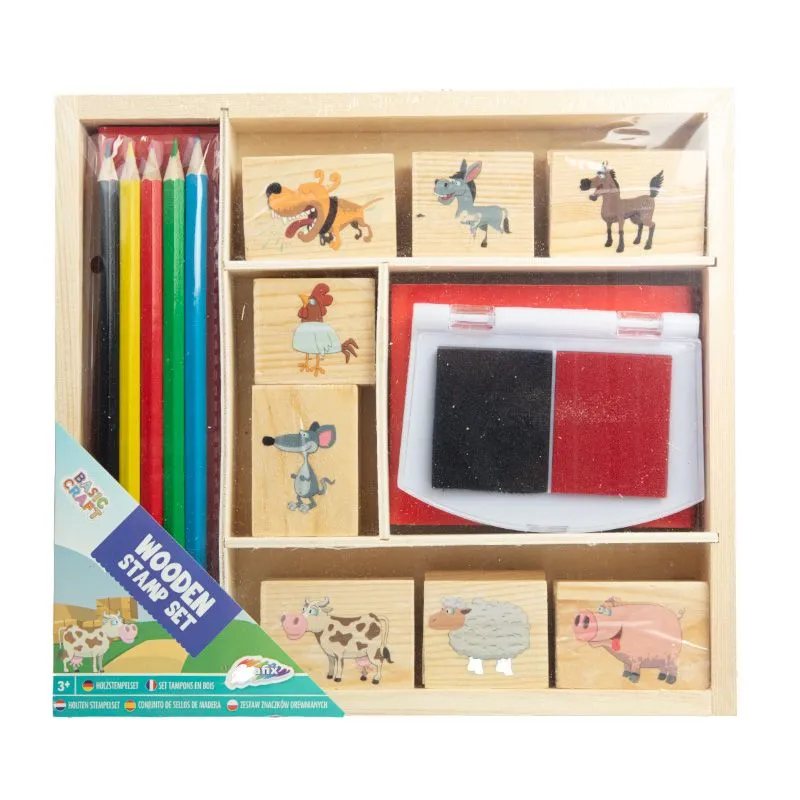 Slipp kreativiteten fri med det stilige Grafix Basic Craft stempelsettet! Hvert stempel kommer med motiv av søte gårdsdyr som du kan stemple i rød eller sort. Dekorer med en hund, hest, esel, hane, mus, ku, sau, eller en gris.