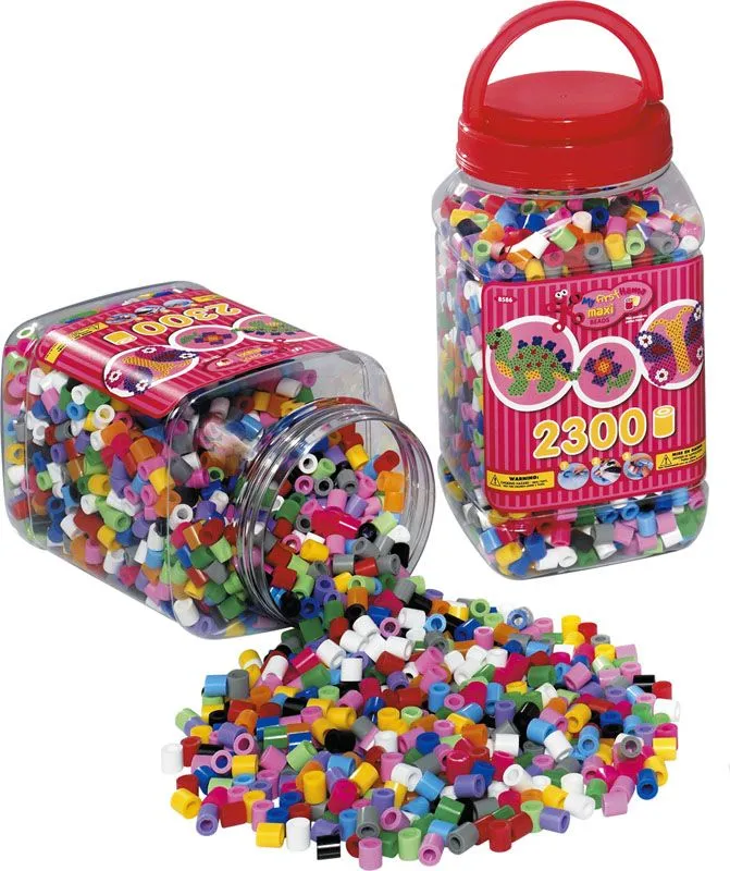 Denne praktiske plastboksen med håndtak fra Hama inneholder ca. 2300 Maxi perler i flere flotte klassiske farger! Perfekt for de små som kan bruke fantasien og kreativiteten sin for å perle flotte figurer og mønstre.