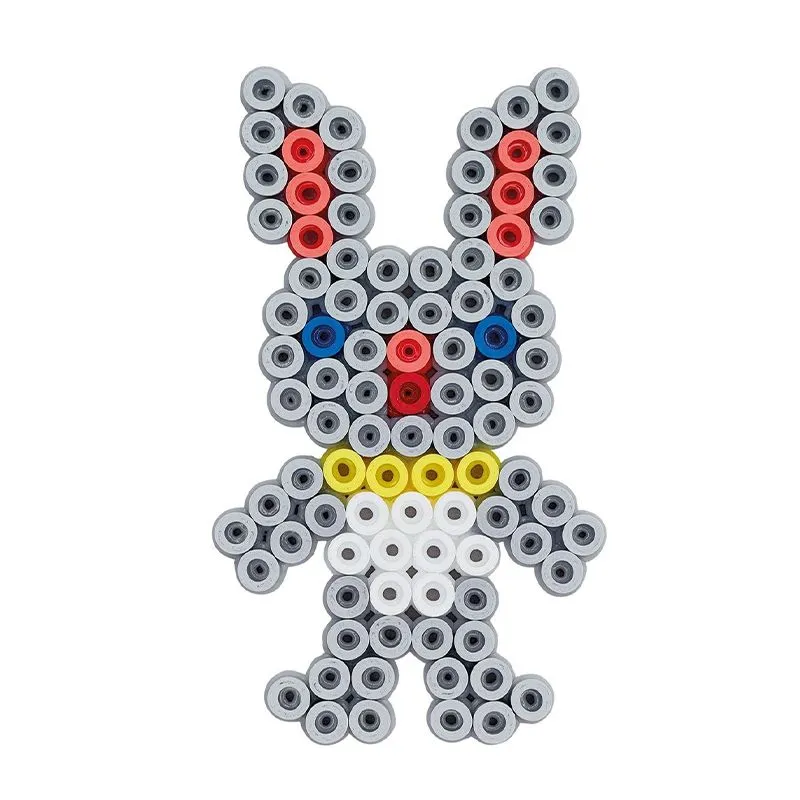 Barna kan bruke fantasien og lage flotte, fargerike mønstre og figurer på dette lille kanin perlebrettet.