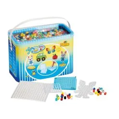 De små kan bruke fantasien og lage masser av flott kunst med dette store Hama Maxi perlesettet i bøtte! Settet består av 3000 perler i maxi størrelse i ulike farger, 1 perlebrett formet som kanin, 2 firkantet perlebrett i forskjellige størrelser, inspirasjonsark og strykeark. Alle deler kan oppbevares i den praktiske bøtta med lokk.