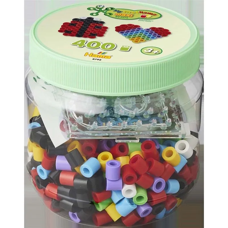 De små kan bruke fantasien og lage flotte kunstverk med dette Hama Maxi perlesettet! Dette perlesettet i boks kommer med 400 perler, 1 hjerteformet og firkantet perleplate og strykepapir. Å leke med perler øker kreativiteten og trener finmotorikk, mønstergjengivelse, fargelære, logikk og geometrisk sans.Kun fantasien setter grenser!