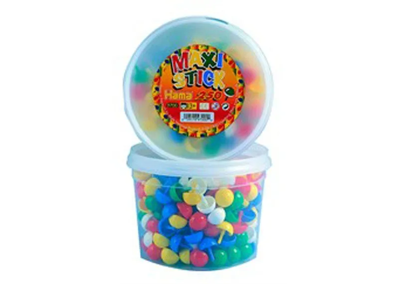 La de små utfolde seg i kreativ lek og lage fargerike kunstverk igjen og igjen! Denne bøtten inneholder hele 250 Hama Maxi stifter i 9 ulike farger som kan brukes til å lage mange fine kunstverk på Hama Maxi Stiftplater i ulike former (selges separat).