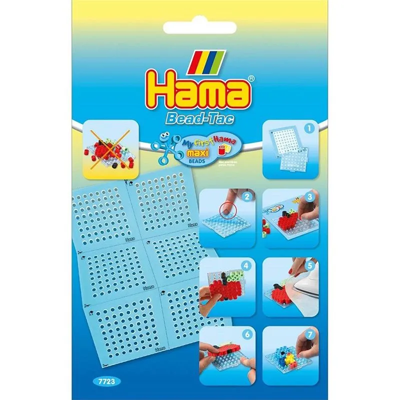 Hama Maxi limmattene sørger for at perlene ikke velter av perlebrettet når de små perler forskjellige figurer og mønster. Legg en limmatte over et Hama Maxi perlebrett og start å perle. Beregnet for små firkantet perlebrett. I pakken får du 6 firkantet limmatter.