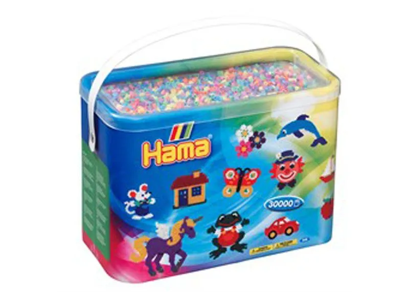 Denne praktiske boksen fra Hama inneholder ca. 30.000 Midi perler i flere flotte pastellfarger! Både barn og voksne kan bruke fantasien og kreativiteten sin for å perle flotte figurer og mønstre.