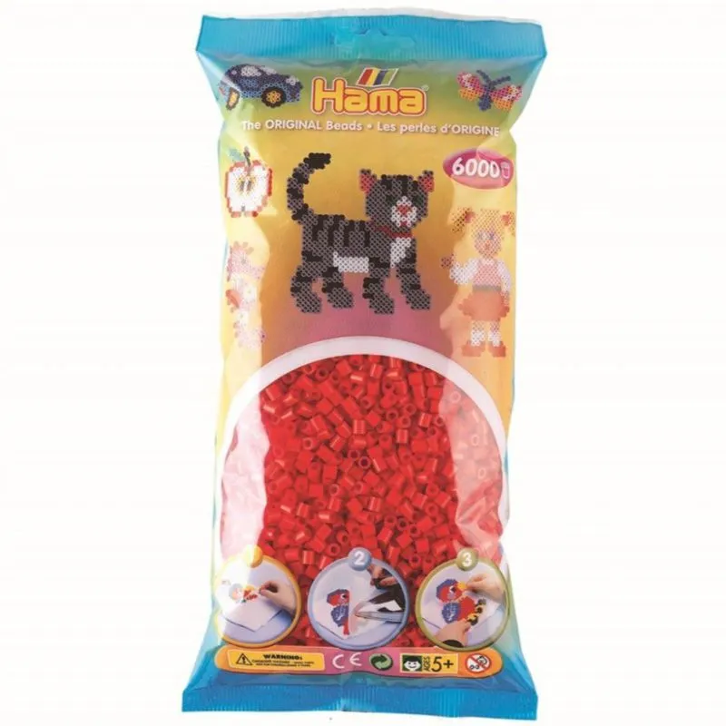 - Inneholder 6000 Hama Midi Perler i fargen Rød