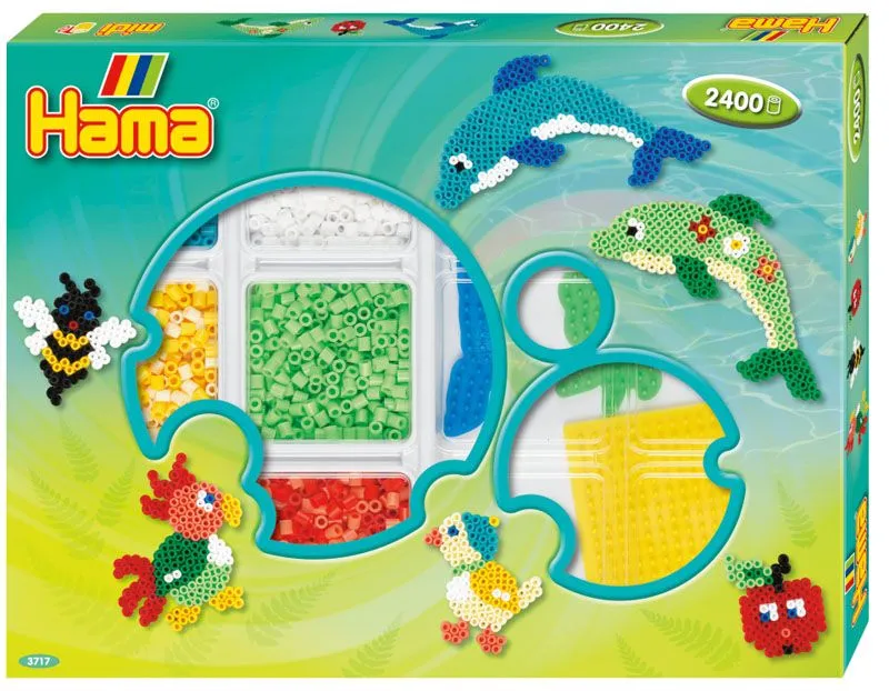 Perle figurer og dekor med fargerike Hama Midi perler! Dette gøyale aktivitetssettet inneholder ca 2400 perler i ulike farger, tre perlebrett; lite kvadrat, papegøye og delfin, motivark, veiledning og strykepapir, og alt kommer i en praktisk oppbevaringseske.