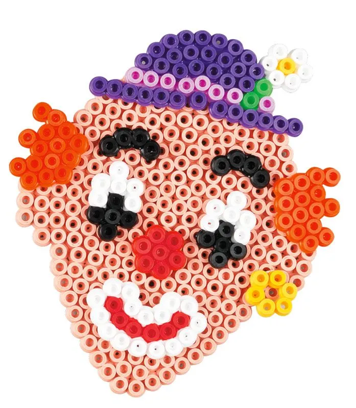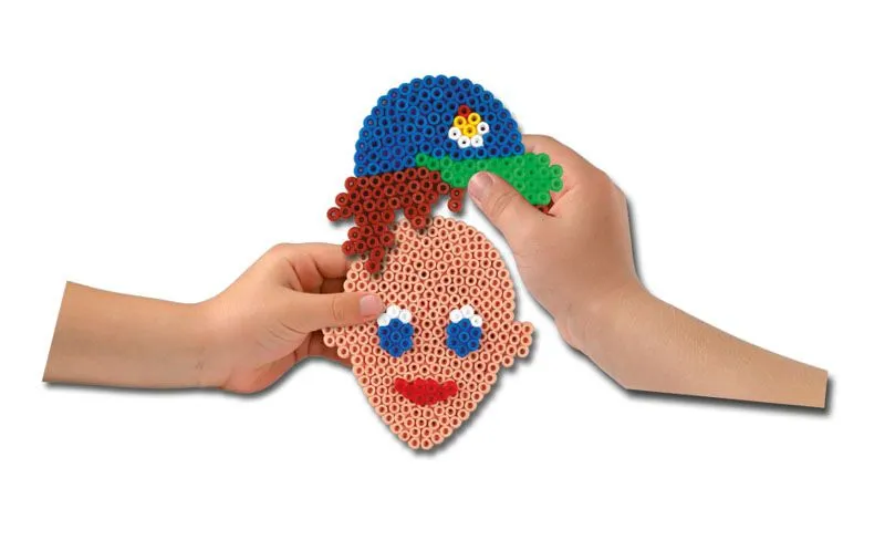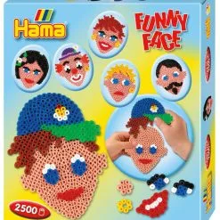 Flott Hama Midi gaveeske med 2500 perler i ulike farger, 1 eggeformet perlebrett, opphengskitt og motivark som viser hvordan en perler morsomme ansikt og tilbehør. Inkludert er også veiledning og strykepapir.