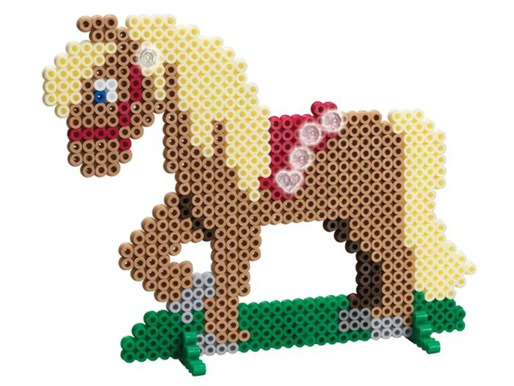 Flott Hama Midi gaveeske med 4000 perler i ulike farger, perlebrett og motiver av hester, hunder og rytter fra rideskolen. Pakken inneholder 4000 perler, 2 perlebrett, motiver som du kan perle over, instruksjoner og strykepapir. Anbefalt alder: 5+