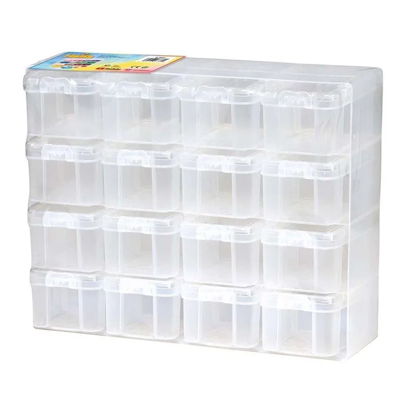 Stor oppbevaringsboks med 16 små bokser som kan brukes til å sortere og organisere perlene dine. Oppbevaringsboksen gjør det enklere å holde orden på de ulike fargene. Oppbevaringsboksen er beregnet for perler i størrelse Midi. Hama Midi perler selges separat.