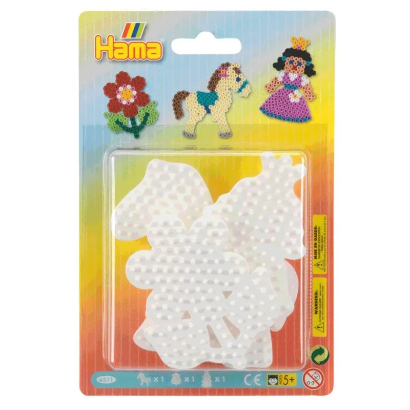 I dette settet fra Hama får du 3 flotte former du kan perle. Perlebrettene kommer i form av hest, blomst og prinsesse. Lag flotte mønster med forskjellige fargekombinasjoner med Hama Midi perler (selges separat).