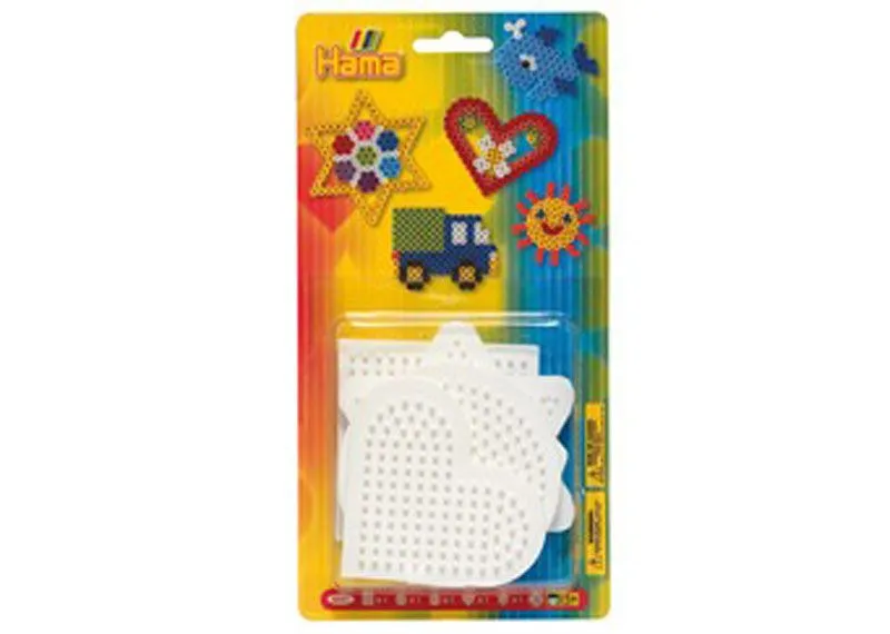Perle morsomme figurer og mønstre på disse fem perlebrettene formet som kvadrat, sirkel, sekskant, hjerte og stjerne. Bruk fantasien og lag flotte mønstre og fargekombinasjoner med Hama Midi perler (selges separat).