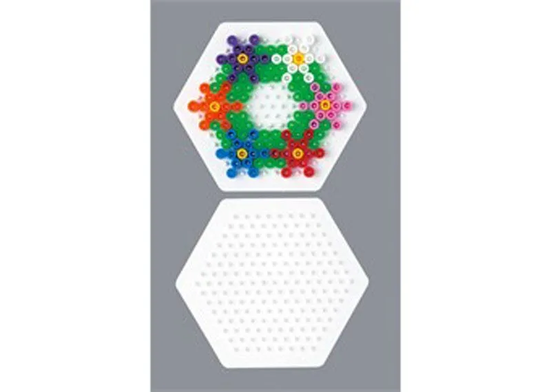 Barna kan bruke fantasien og lage flotte, fargerike mønstre og morsomme figurer på dette lille, sekskantede perlebrettet fra Hama. Brettet passer til Hama Midi perler (selges separat).