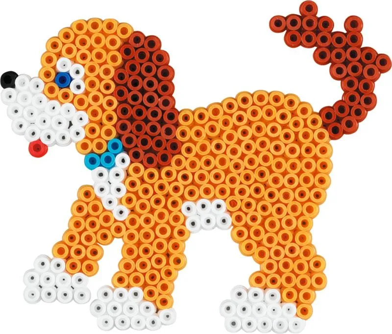 Flott Hama Midi perlesett med 2000 perler i ulike farger, 2 perlebrett; hund og katt, 6 perleføtter og motivark som viser hvordan en perler kule dyr. Inkludert er også veiledning og strykepapir.