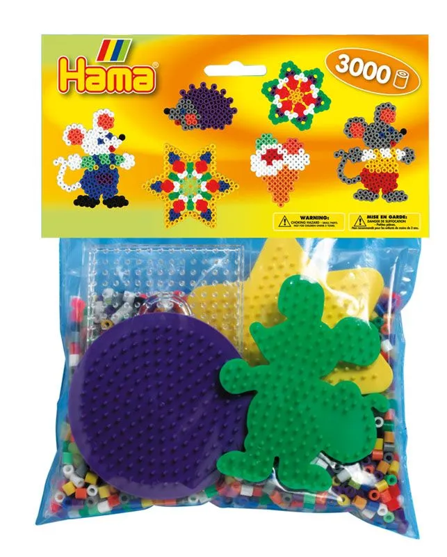La barna utfolde seg i kreativ lek med dette Hama Midi settet bestående av 4 perlebrett, 3000 perler i ulike farger og idéark. Perlebrettene er formet som lite kvadrat, liten sirkel, liten stjerne og mus.