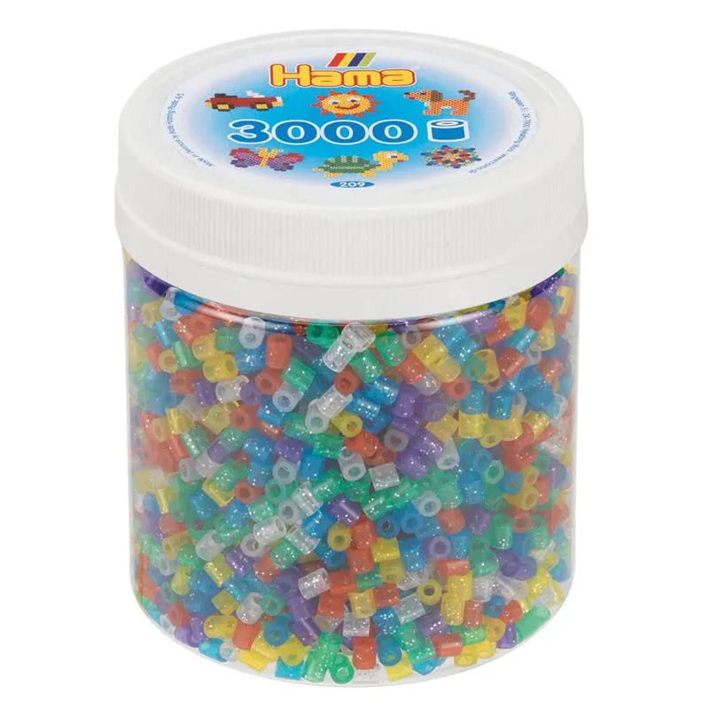 Denne praktiske plastboksen fra Hama inneholder 3000 Midi glitter perler i forskjellige farger! Perfekt for både barn og voksne som er glad i å lage flotte kunstverk med perler.