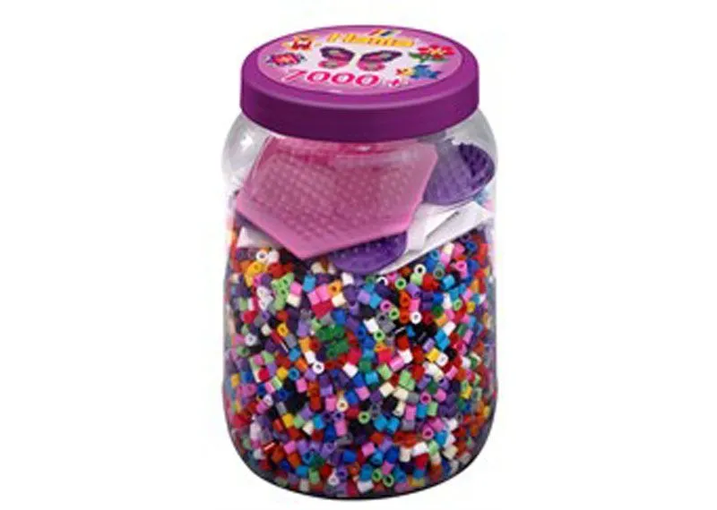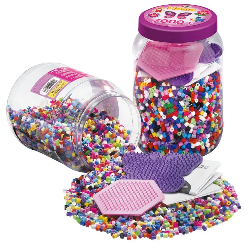 Denne praktiske plastboksen fra Hama inneholder alt en liten perleentusiast trenger for å lage flott kunst! Med 7000 Midi perler i flere ulike farger, to perlebrett (sekskant og sommerfugl), strykepapir og idéhefte kan barna lage sine egne mønstre eller følge de som følger med.