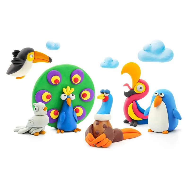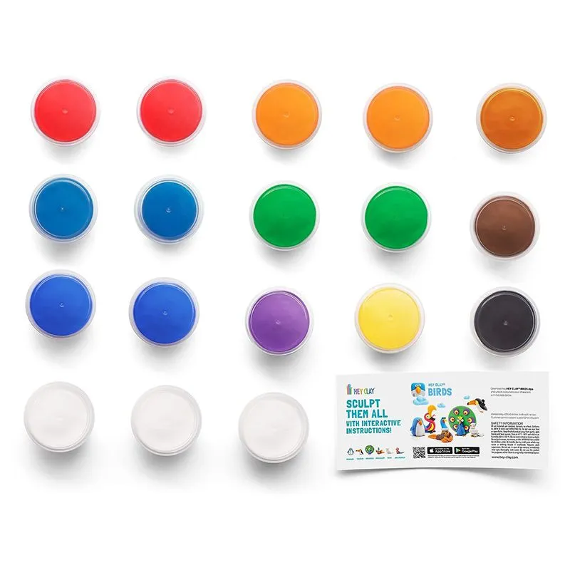 Dette morsomme Hey Clay lekesettet lar deg forme søte fugle-figurer med lekeleiren. Lag en fasan, tukan, pingvin, papegøye, due, og en påfugl med hjelp av instruksjonene som følger med!