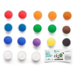 - 18 bokser lufttørket modelleringsleire (198 gram hver) i forskjellige farger.