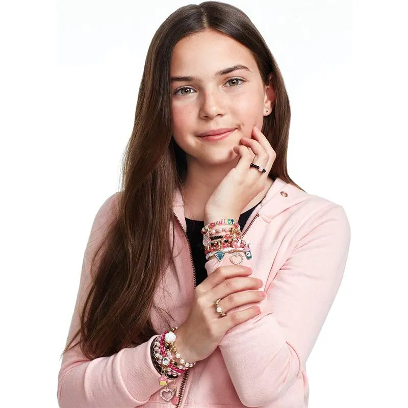 Skap din personlige stil med dette rÄ kule Pink & Precious settet fra det populÊre merket Juicy Couture. Dette klassiske Juicy Couture-settet lar unge designere sette et personlig preg pÄ den tidlÞse stilen til et charms armbÄnd. En vakker charm gir deg mulighet til Ä style den pÄ mange mÄter. Bruk den som et anheng pÄ et kjede, eller fest flere charms pÄ et armbÄnd. Settet inneholder et rikt utvalg av fargerike charms! Mulighetene er uendelige!