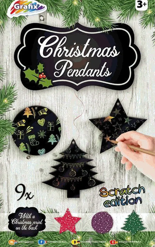 Perfekt for juleverksted! Pakken inneholder 3 sirkler, 3 stjerner og 3 juletrær som alle er sorte i utgangspunktet. Bruk det medfølgende verktøyet til å skrape frem dine egne fine mønster.Der hvor en skraper kommer fargene frem. Tau til oppheng følger om med i pakken. Passer fra 3 år+