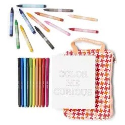 Dette flotte fargeleggingsettet fra Kid Made Modern er perfekt når barna trenger utslipp for kreativiteten! Barna kan fargelegge i den spennende fargeboken som følger med, hvor hver side kommer med flotte mønster. I pakken finner du 12 voksfarger og 10 tusjer som er lette å vaske bort fra glatte overflater. Den praktiske lille baggen har plass til alt utstyret som følger med slik at det er lett å ta med seg på farten.