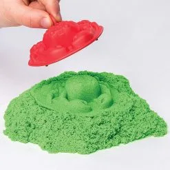 - Inneholder: 450g Kinetic Sand i grønn, 3 former, spade, og liten sandkasse.