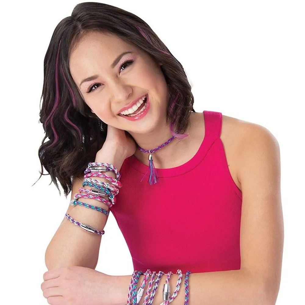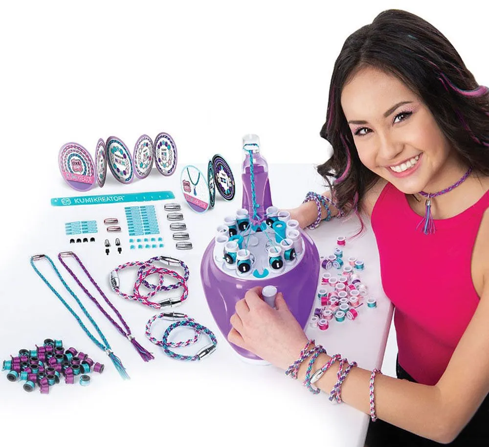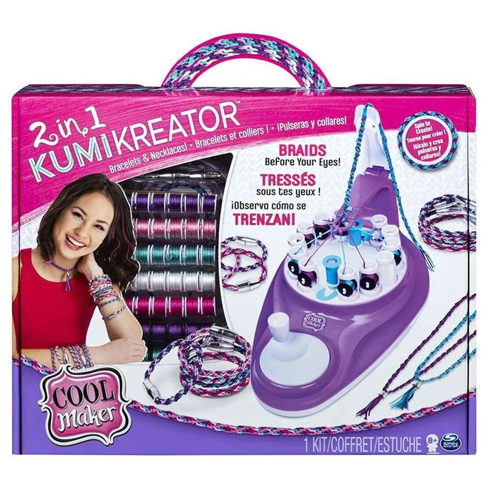 Med denne super morsomme Kumi Kreatoren 2 i 1 kan du enkelt lage dine egne armbånd og smykker. Du velger ut de fargene du ønsker på snellene og setter de på Kumi spinneren. Når du sveiver rundt vil maskinen lage flette nydelige armbånd og smykker som du kan gi til venner og familie. I settet følger det med hele 60 spoler med tråd i ulike farger. Du får også med en designbok med ulike ideer og inspirasjon samt fester til de ferdige armbåndene og smykkene. Alt i alt har du nok til å lage 5 armbånd og 2 smykker. Anbefalt alder: 8+