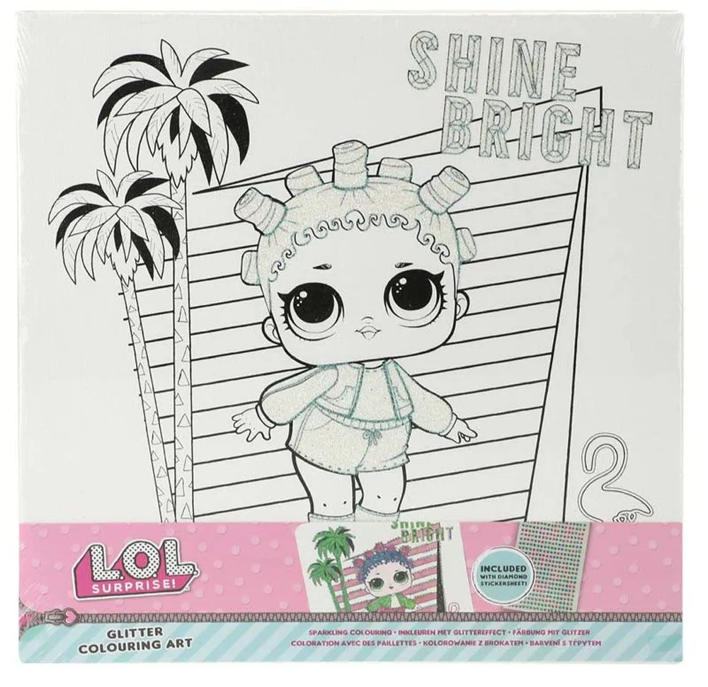 Lag ditt helt eget L.O.L surprise! Shine Bright kunst på dette flotte lerretsbildet. Enkelte felt er med glitter så når du farger over vil du få en glitter effekt i kunsten din. Det følger med bling som du kan dekorere kunsten med slik du selv ønsker. Lerretet måler 29 x 29 cm. Anbefalt fra 5 år.