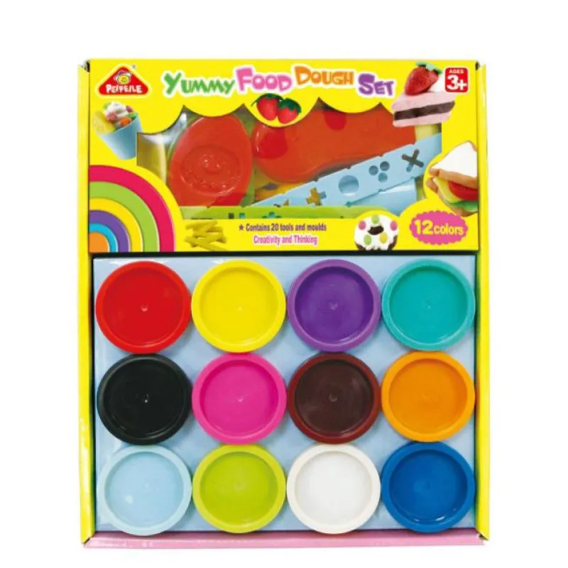 Miljøvennlig og giftfri farget leire for barn. Flott pedagogisk leketøy – fremmer teksturspill og mental utvikling for barn. Kom med 8 individuelle kar med forskjellige fargede deig + diverse deigskyttere, kuttere og former og redskaper. Lag den maten dere måtte ønske med dette flotte leire matsettet med 12 fargete leirer. For alderen 3 år og oppover