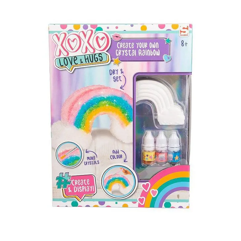 Lag din helt egne krystall skulptur i for av en søt regnbue med dette morsomme settet fra Love & Hugs XOXO! Legg til krystallene til figuren og bruk fargene som følger med til å dekorere den slik du selv vil. La krystall regnbuen tørke og hvis deretter det flotte kunstverket frem. Flere Love & Hugs krystallfigurer som du kan lage selges separat.
