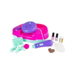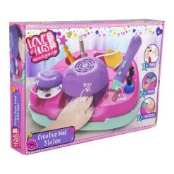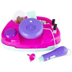 Med denne kreative neglesalongen kan du lage din helt egen neglekunst! Ta på et lag med neglelakk og bruk maskinen for å få det til å tørke. Deretter kan du bruke de forskjellige stemplene for ¨lage stilig mønster på neglene dine. For å gjøre det enda mer unikt, kan du avslutte med å legge til glitter på neglene.