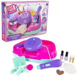 Med denne kreative neglesalongen kan du lage din helt egen neglekunst! Ta på et lag med neglelakk og bruk maskinen for å få det til å tørke. Deretter kan du bruke de forskjellige stemplene for ¨lage stilig mønster på neglene dine. For å gjøre det enda mer unikt, kan du avslutte med å legge til glitter på neglene.