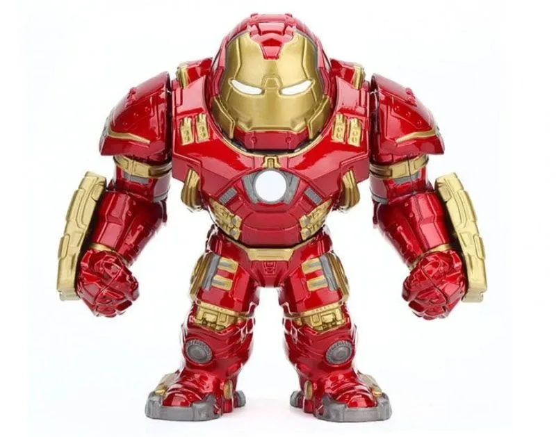 Hulkbuster måler ca 16 cm i høyden, og Iron Man måler ca 6 cm i høyden.