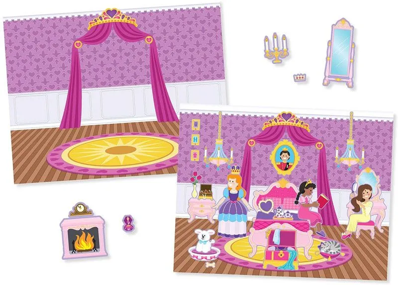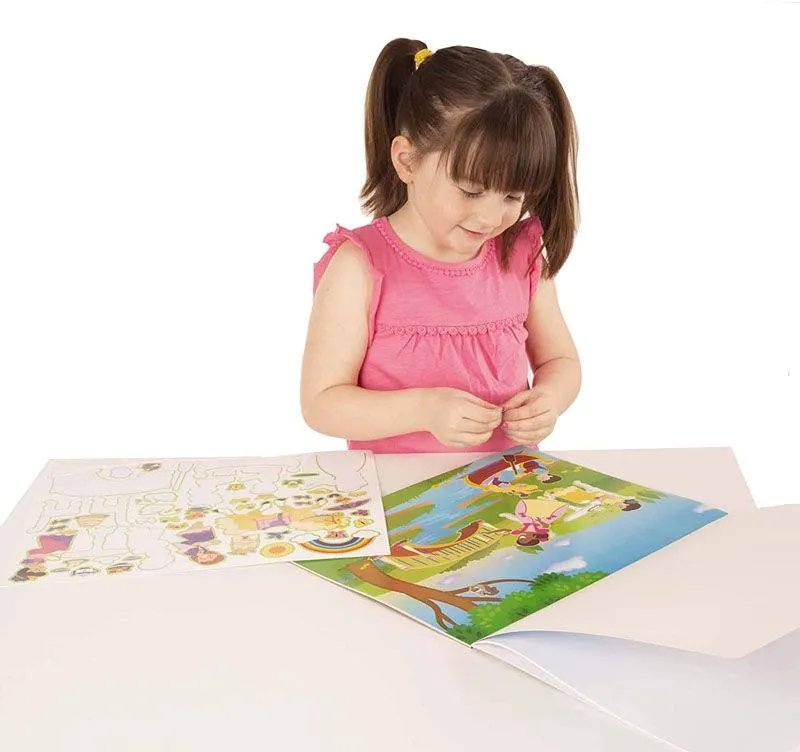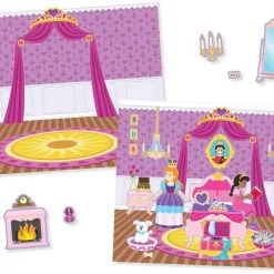 Kjekk klistermerkebok med 200 klistermerker som kan flyttes rund og brukes igjen og igjen. Blokken inneholder 5 scener der 4 er innenfra slottet og en fra slottshage, hvor du kan plassere alle klistermerkene. Blokken mÃ¥ler 35,5×28 cm. Passer fra 3 Ã¥r+