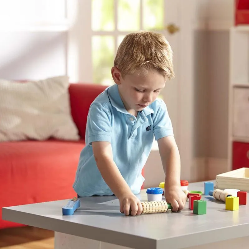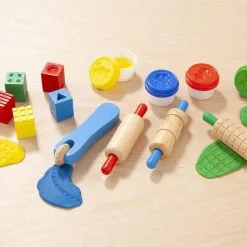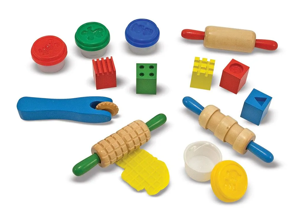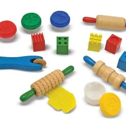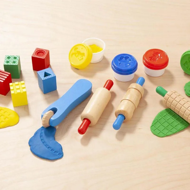 Lek, form og lag morsomme mønstre og figurer med dette fargerike lekeleiresettet fra Melissa & Doug. Settet inneholder 4 bokser med lekeleire i flotte farger, tre kjevler med mønster, fem stemper og en kutter.