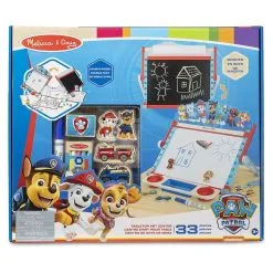 Det er mange måter å lage flotte kunstverk på med denne Paw Patrol tegnetavlen! Tegn på papirrullen, lag design og skriv på tavlen, lag igjen og igjen på den magnetiske tørrslettingsflaten, og fyll ut aktivitetsark. Den magnetiske basen til det justerbare kompasset klistrer seg fast til tørrslettbrettet. Sett deretter inn tørkeslettmarkøren for å tegne perfekte sirkler i forskjellige størrelser! Legg til Paw Patrol-magneter på brettet, eller bruk dem til å holde aktivitetsark på staffeliet. Det bærbare staffeliet med vedlagt skuff brettes flatt for enkel oppbevaring. Paw Patrol er alltid klar til å hjelpe og inspirere førskolebarn med en blanding av lagarbeid, eventyr og humor når de utvikler sosiale, følelsesmessige og utviklingsmessige ferdigheter gjennom lek.