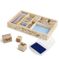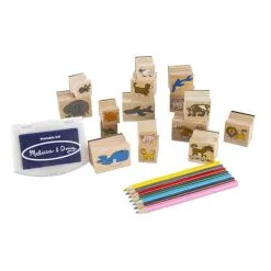 Med dette stempelsettet som inneholder 16 ulike dyrestempler, stempelpute, og 7 fargeblyanter kan både små og store dekorere og fargelegge flotte kunstverk. Alt har sin plass i den praktiske treboksen når pyntingen er ferdig. Anbefalt alder fra 4 år.