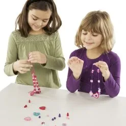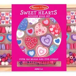 Lag flotte smykker og annen pynt med disse fargerike treperlene i rosa og lilla farger! Settet består av over 120 perler i ulike former og farger med hjertemotiv og flotte detaljer, snorer til å perle pÃ¥ er også inkludert i pakken.