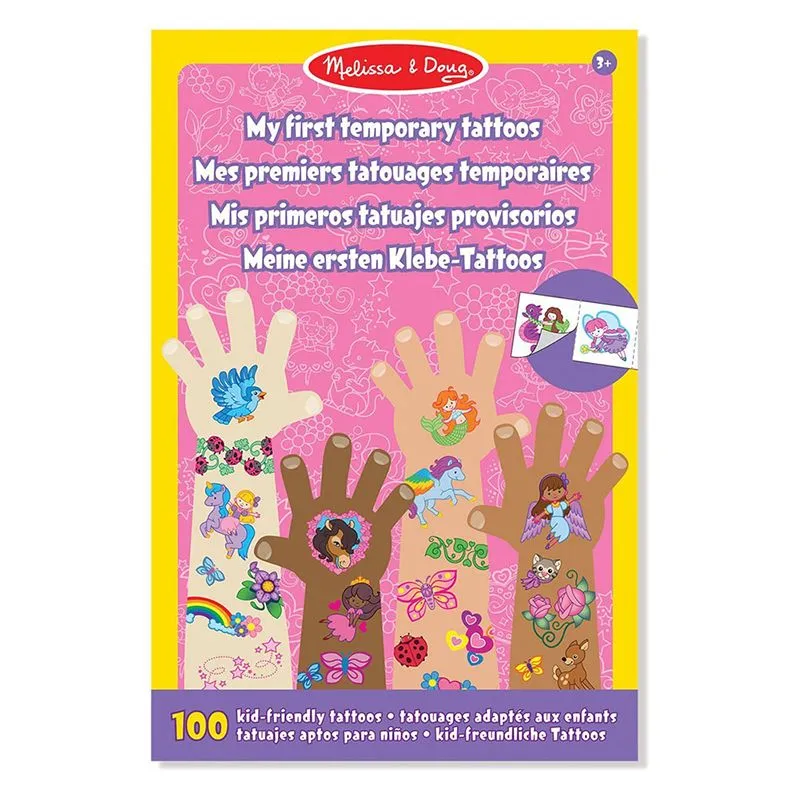 Trykk dem på, skrell dem av og la din personlighet vise! Min første midlertidige tattovering er brukbar for barn. De sterke fargene, fantastiske detaljene og barnevennlige tema vil se nydelig ut på alle hudtoner. Det er mer en 100 tatoveringer i pakken. Anbefalt alder: 4+