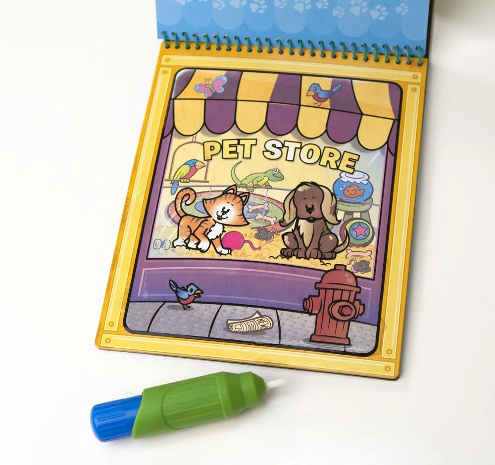 UnngÄ sÞl med dette vannbaserte malesettet fra Melissa & Doug. Denne spennende, fargerike maleboken inneholder 4 gjenbrukbare sider og en pÄfyllbar vannpenn. Bruk vannpennen til Ä farge hvert motiv, la det tÞrke for sÄ Ä male igjen.