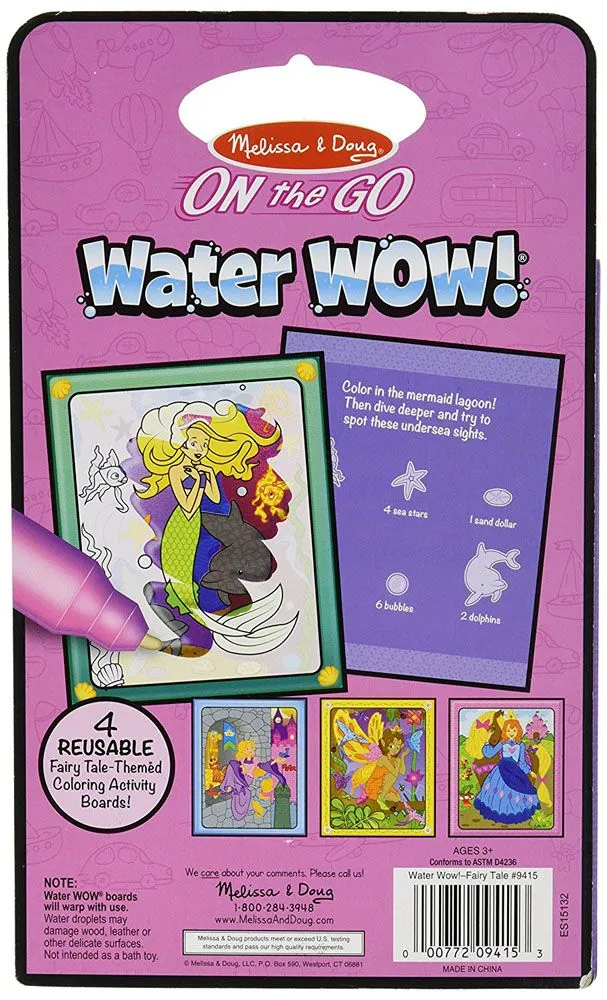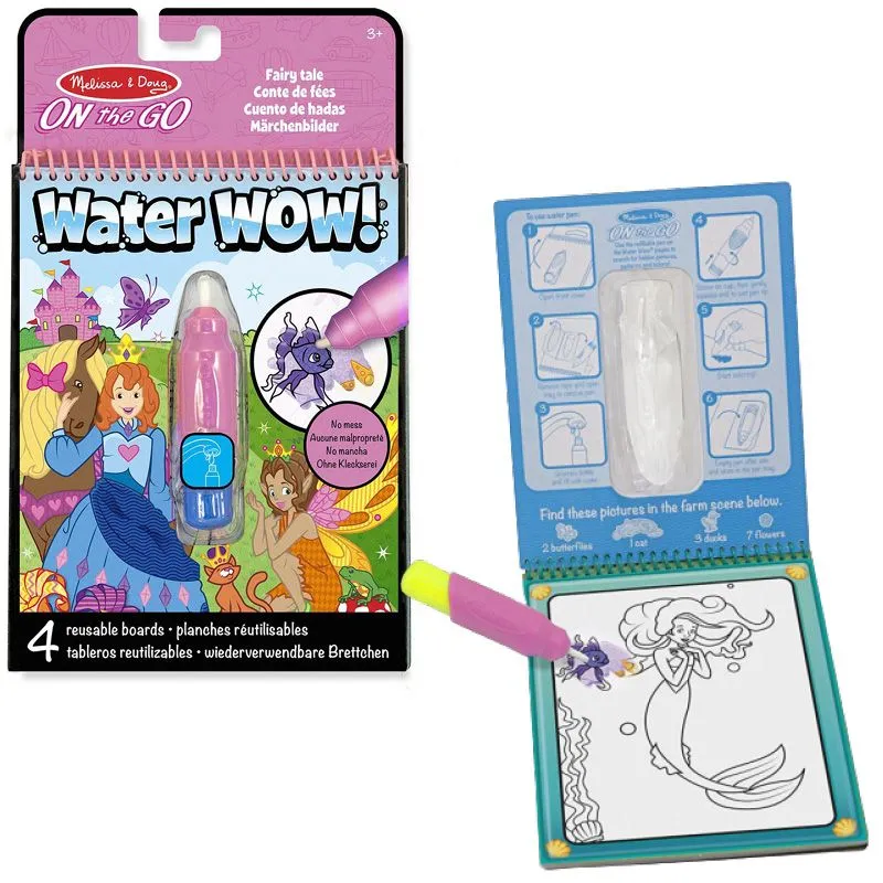 Unngå søl med dette vannbaserte malesettet fra Melissa & Doug. Denne spennende, fargerike maleboken inneholder 4 gjenbrukbare sider og en påfyllbar vannpenn. Bruk vannpennen til å farge hvert motiv, la det tørke for så å male igjen. Denne boken med eventyr-tema har flotte motiver av feer og andre eventyrfigurer. Vannpennen med liten størrelse er lett for små barnehender å holde, og lagres praktisk i maleboken slik at det er enkelt å ta med seg. Perfekt å ha med på reisen! Anbefalt alder fra 3 år.