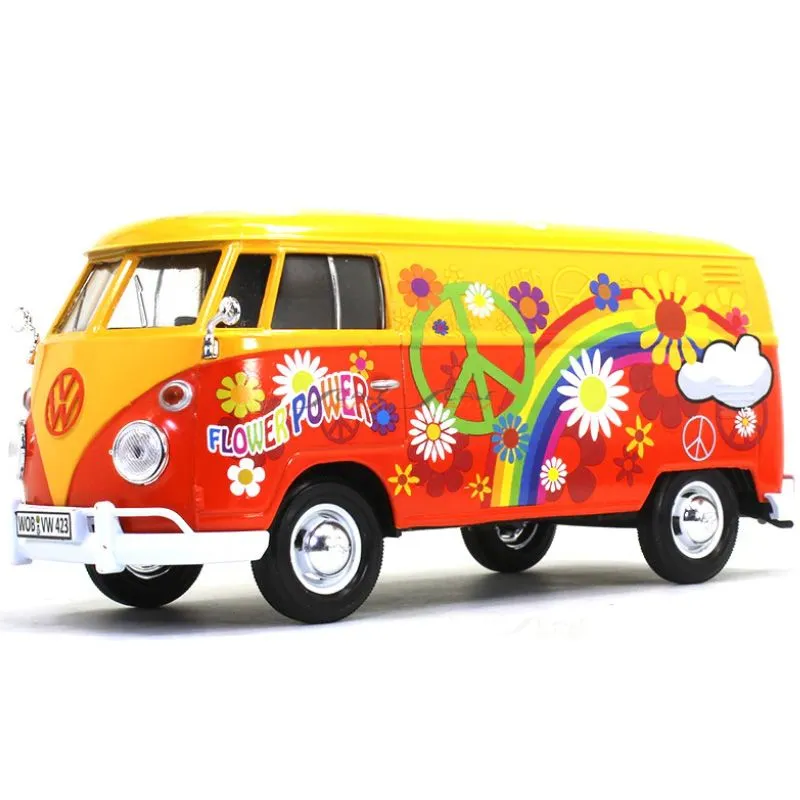 Volkswagen Type 2 (T1) flower power delivery van med flotte detaljer i 1:24 skala fra MotorMax.