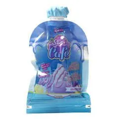 Slimi café toppings, alt du behøver for å gjøre det morsomme enda festligere med Slimi cafés starter settene. De såkalte toppingene finnes i tre ulike varianter – Jameez, FluffiWhipz og Swirleez som finnes i tre ulike farger av hver. Jameez er i en syltetøyaktig konsistens og finnes i fargene Blue razzleberry, Strawbellicious og Bluebellicious. FluffiWhipz minner om spraykrem og finnes i fargene Minterrific, Veryberry og Tangerini. Sist, men inte minst har vi Swirleez som ligner en karamellsaus som kan formes, i fargene Lemonitwist, Razzleberry og Grapify. Når du har klemt ut og dekorert ferdig, kan du lett ta toppingene fra hverandre og putte dem tilbake i posene sine. I denne pakken får du 1 stk av typen Jameez Blue Razzleberry. NB! Ingen av delene til denne leken er spiselige. Anbefalt alder: 8+